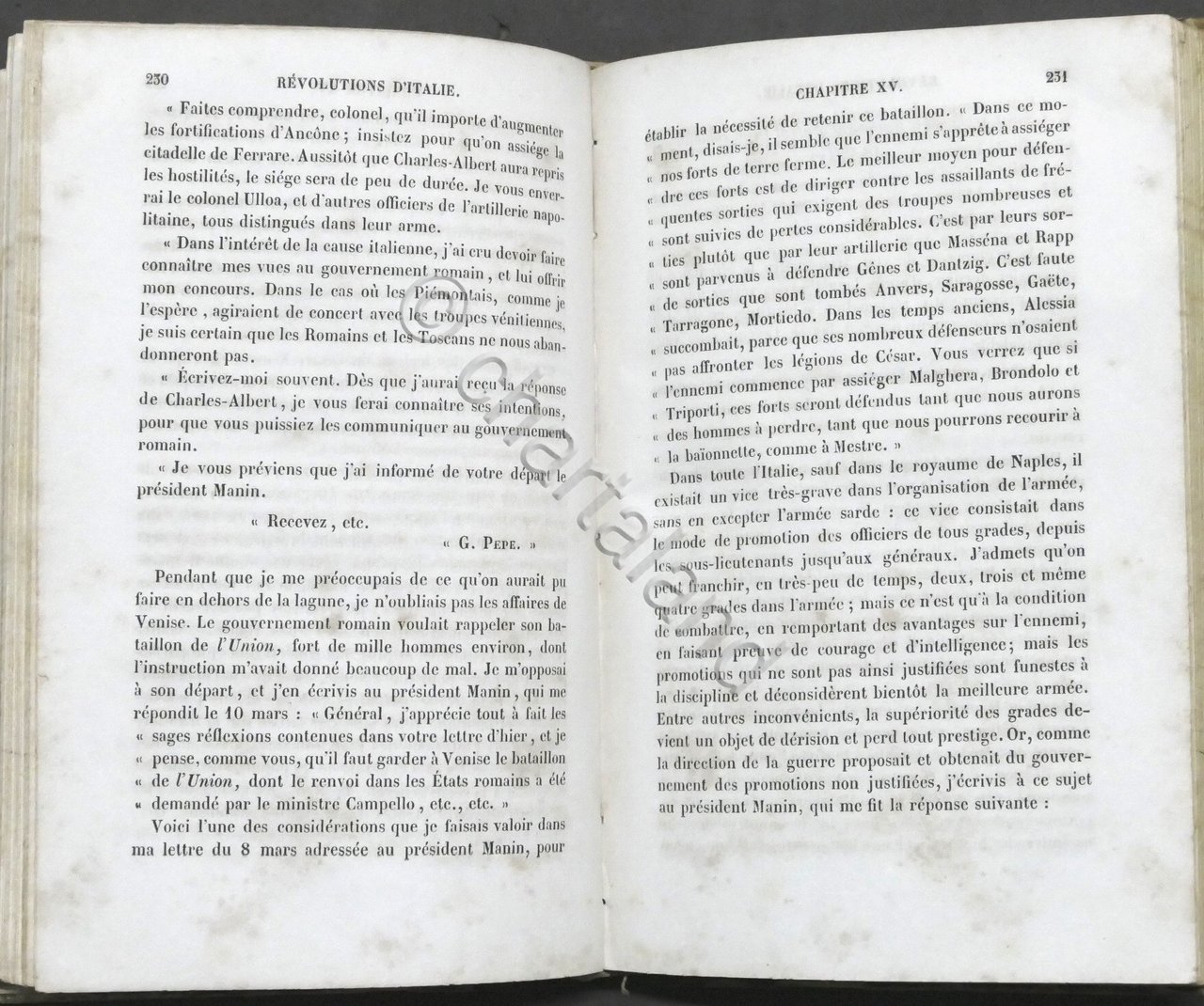 Histoire des Revolutions et des Guerres d'Italie en 1847, 1848 et 1849 par le general G. Pepe - ed. 1850