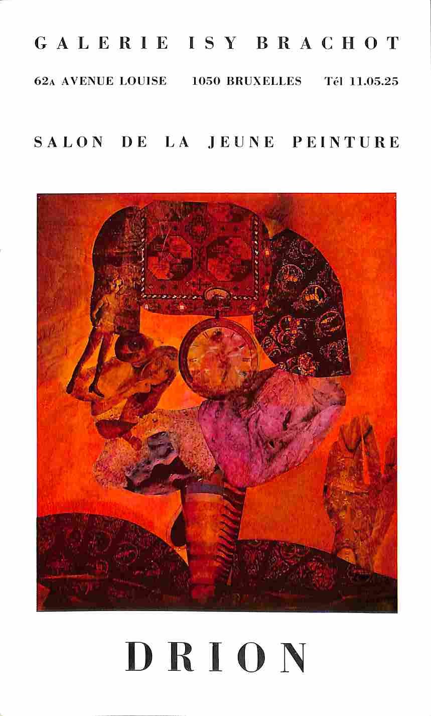 Pieghevole d'invito di 4 facciate (cm 14,5 x 24) alla mostra di opere di Drion svoltasi alla Galleria Isy Brachot di Bruxelles nel 1970 con 2 riproduzioni a colori ai piatti di opere ed elenco delle opere esposte.