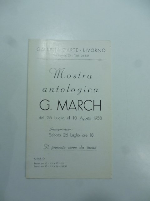 Galleria d'arte, Livorno. Mostra antologica G. March, agosto 1958. Pieghevole di invito