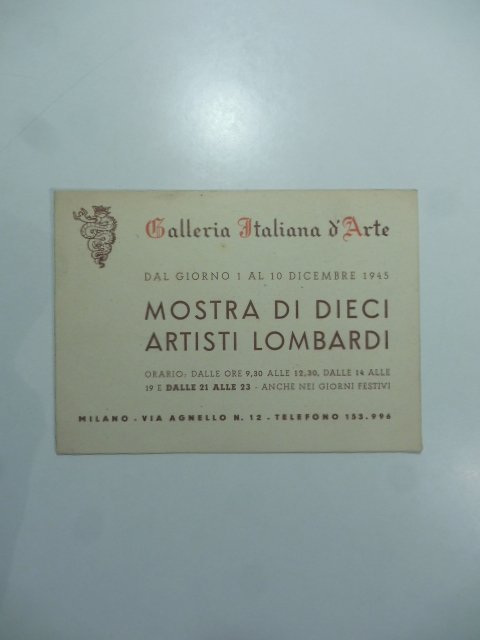Galleria Italiana d'arte. Mostra di dieci artisti lombardi. Pieghevole d'invito | Libri antichi e moderni | Anonimo