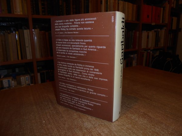 JASPER RIDLEY. Milano, Mondadori, 1975. GARIBALDI. Traduzione di Mino Milani. In-8°, tela edit. con titolo in oro al dorso, sovracopertina ill.a col. 847, (3) pp. Ben conservato. Uff. stanz. TV. mob. nostro sinistra basso carc.