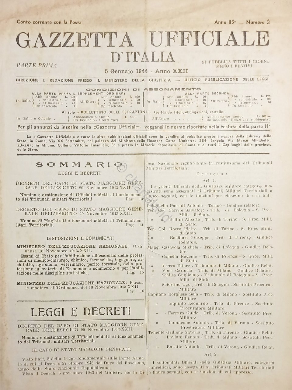 Gazzetta Ufficiale d'Italia N. 3 - 1944