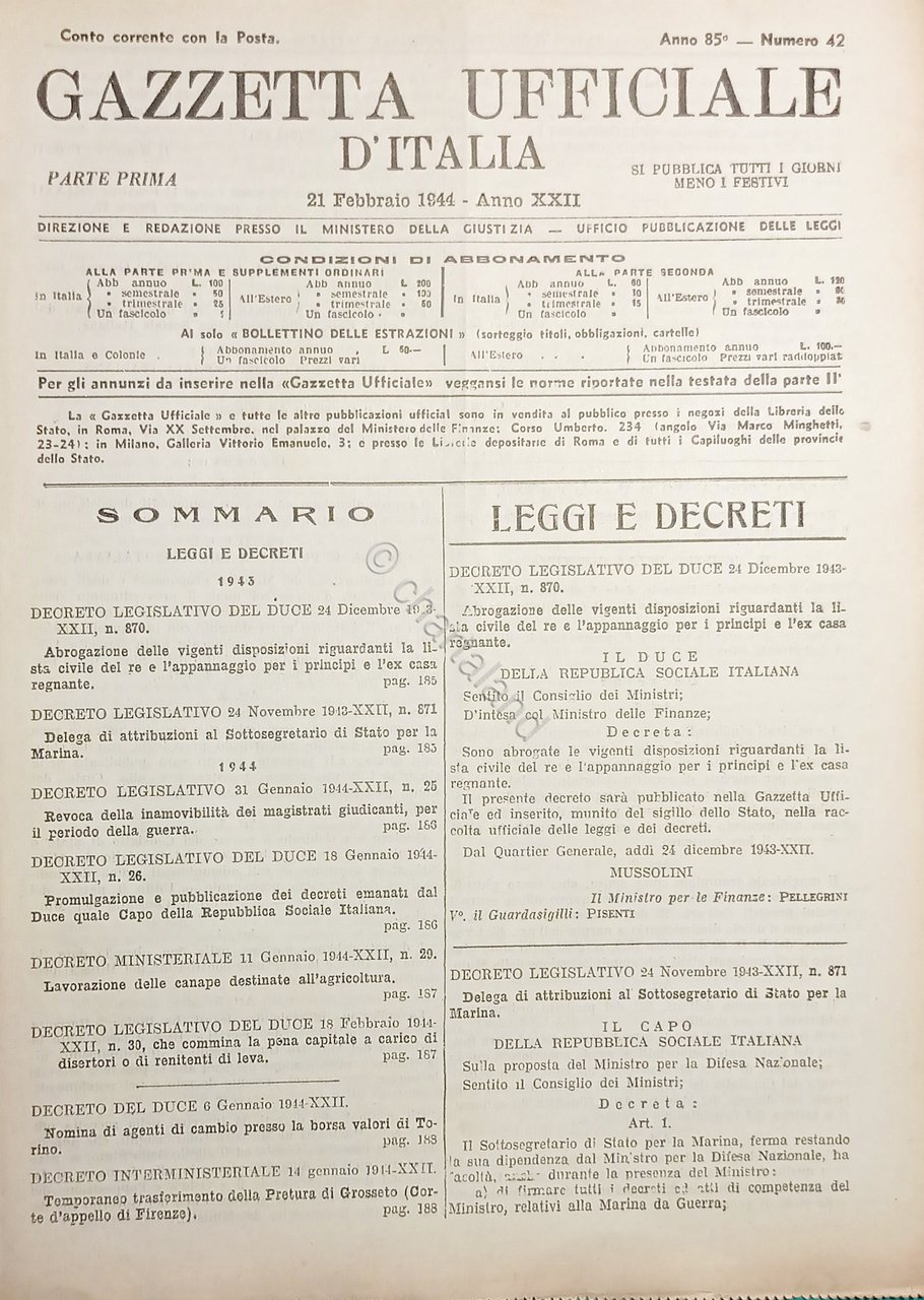 Gazzetta Ufficiale d'Italia N. 42 - 1944