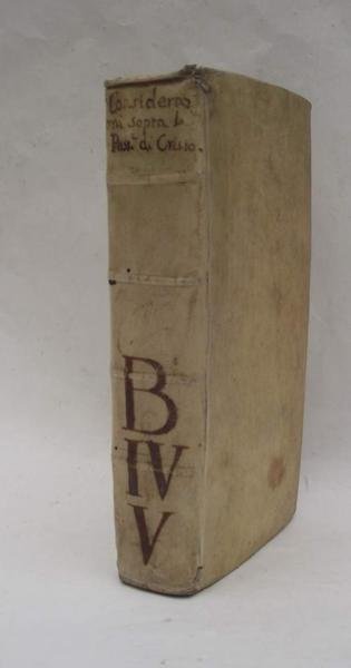Cm 15,5, pp. 332; 24; 22 (2). Leg. coeva in piena perg., dorso a 4 nervi con tit. ms. Ben conservato. Manuale di meditazione ascetica compilato dal gesuita Luigi Albicini.