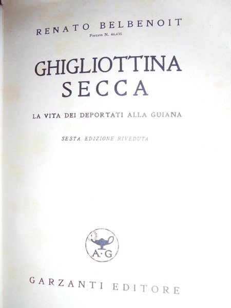 GHIGLIOTTINA SECCA - LA VITA DEI DEPORTATI ALLA GUIANA | Libri antichi e moderni | Belbenoit, Renato
