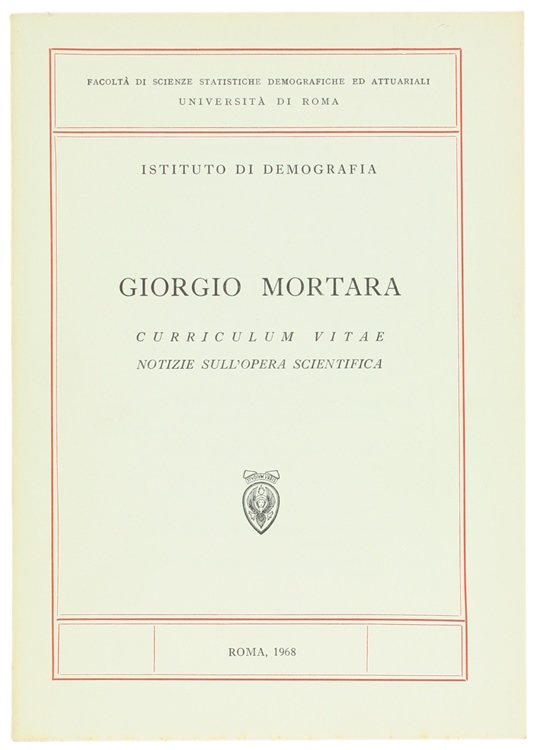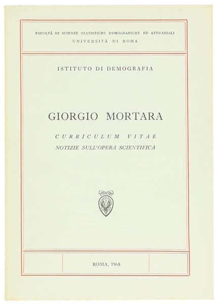 GIORGIO MORTARA. Curriculum vitae - Notizie sull'opera scientifica. | Libri antichi e moderni |