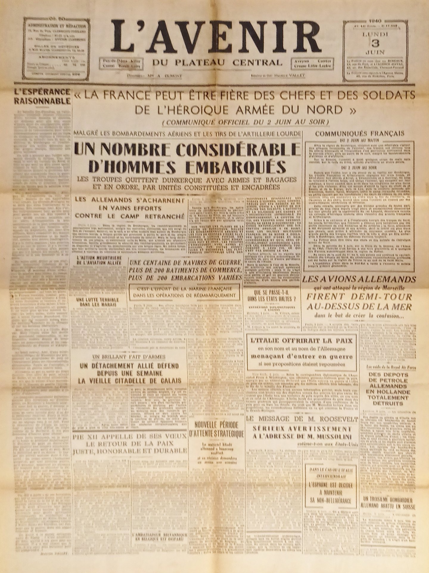 Giornale - L'Avenir N. 17.348 - 1940 Un nombre considérable d'Hommes Embarqués