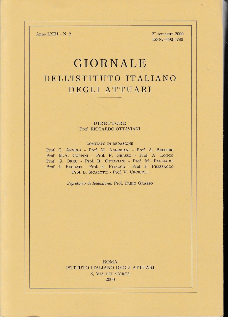 Giornale dell'Istituto Italiano degli Attuari. Anno LXIII - n. 2, 2^ semestre 2000
