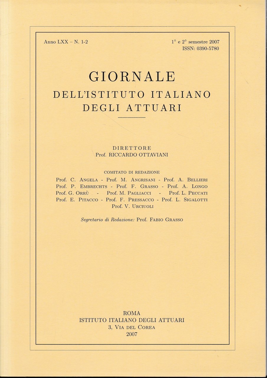 Giornale dell'Istituto Italiano degli Attuari. Anno LXX - n. 1-2, 1^ e 2^ semestre 2007 | Libri antichi e moderni | direttore Riccardo Ottaviani, ,direttore Riccardo Ottaviani