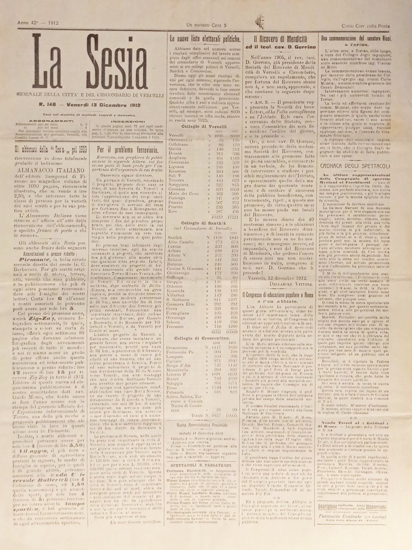 Giornale della Città e del Circondario di Vercelli - La Sesia N. 148 - 1912