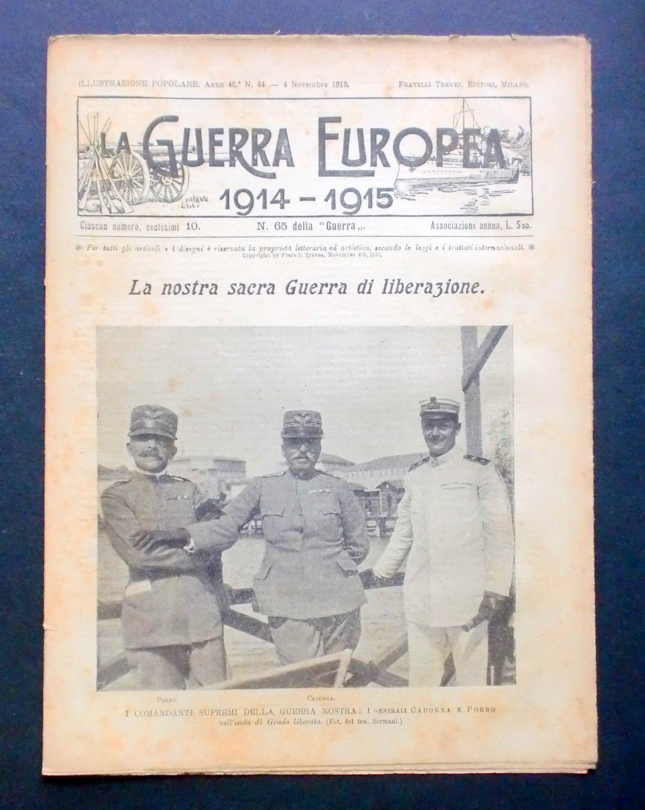 *** Giornale delle Famiglie - F. lli Treves - L'Illustrazione Popolare - La Guerra Europea del 1914-1915 - I comandanti supremi della guerra nostra: i generali Cadorna e Porro - N° 44 - 1915, pp. 16.Interessante pubblicazione, fonte ricchissima di informazioni per studiosi, appassionati e collezionisti