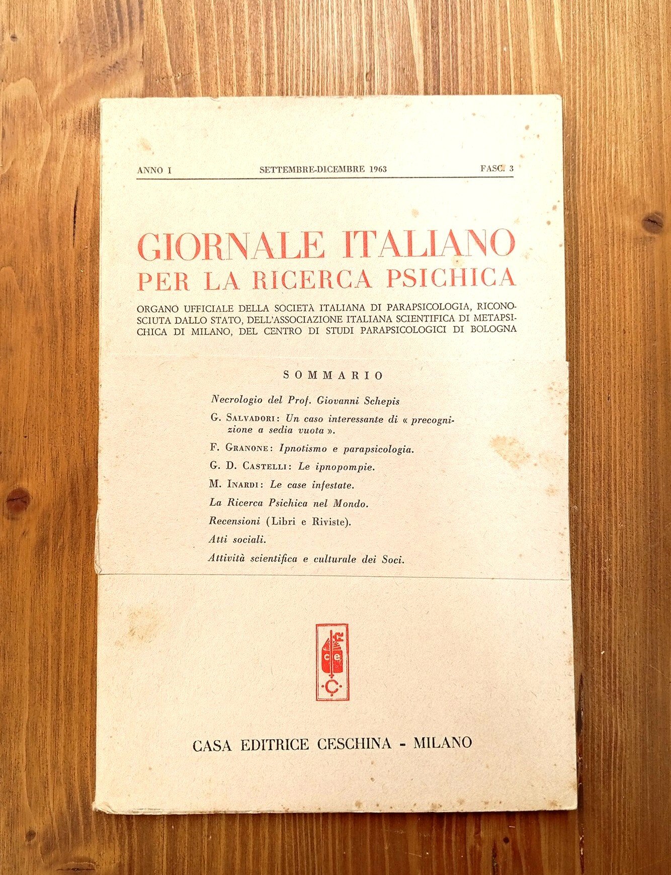 GIORNALE ITALIANO PER LA RICERCA PSICHICA - anno I, fascicolo 3, settembre-dicembre 1963
