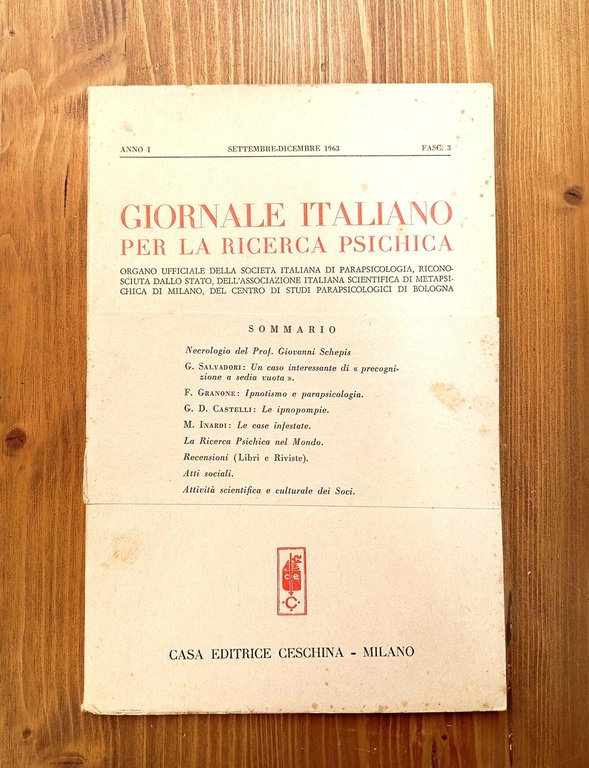 GIORNALE ITALIANO PER LA RICERCA PSICHICA - anno I, fascicolo 3, settembre-dicembre 1963 | Libri antichi e moderni | Somogyi, Stefano (direttore)