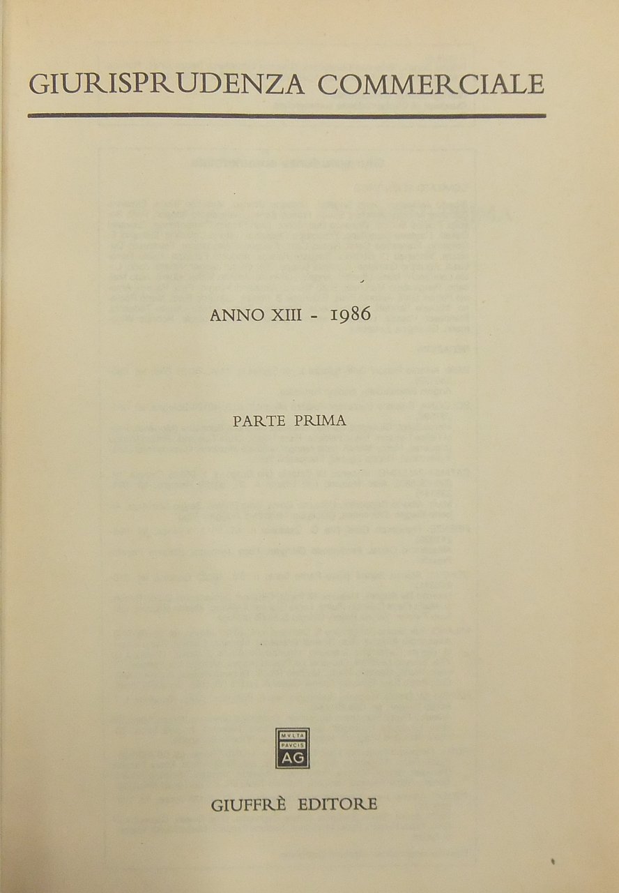 Giurisprudenza Commerciale. Società e fallimento. Anno XIII - 1986 | Libri antichi e moderni | Autori Vari