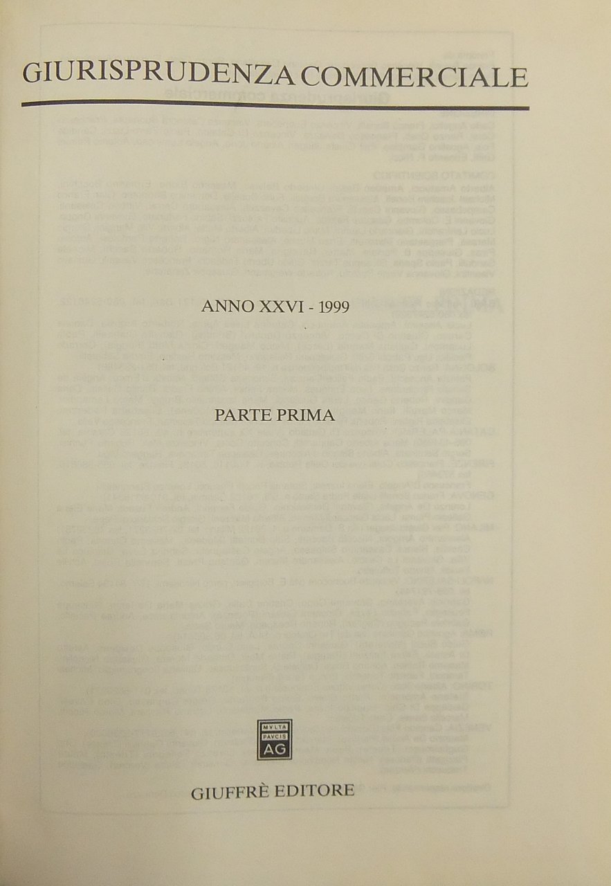 Giurisprudenza Commerciale. Società e fallimento. Anno XXVI - 1999 | Libri antichi e moderni | Autori Vari