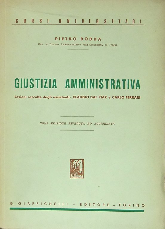 Giustizia amministrativa. Lezioni raccolte dagli assistenti Claudio Dal Piaz e Carlo Ferrari | Libri antichi e moderni | Bodda Pietro