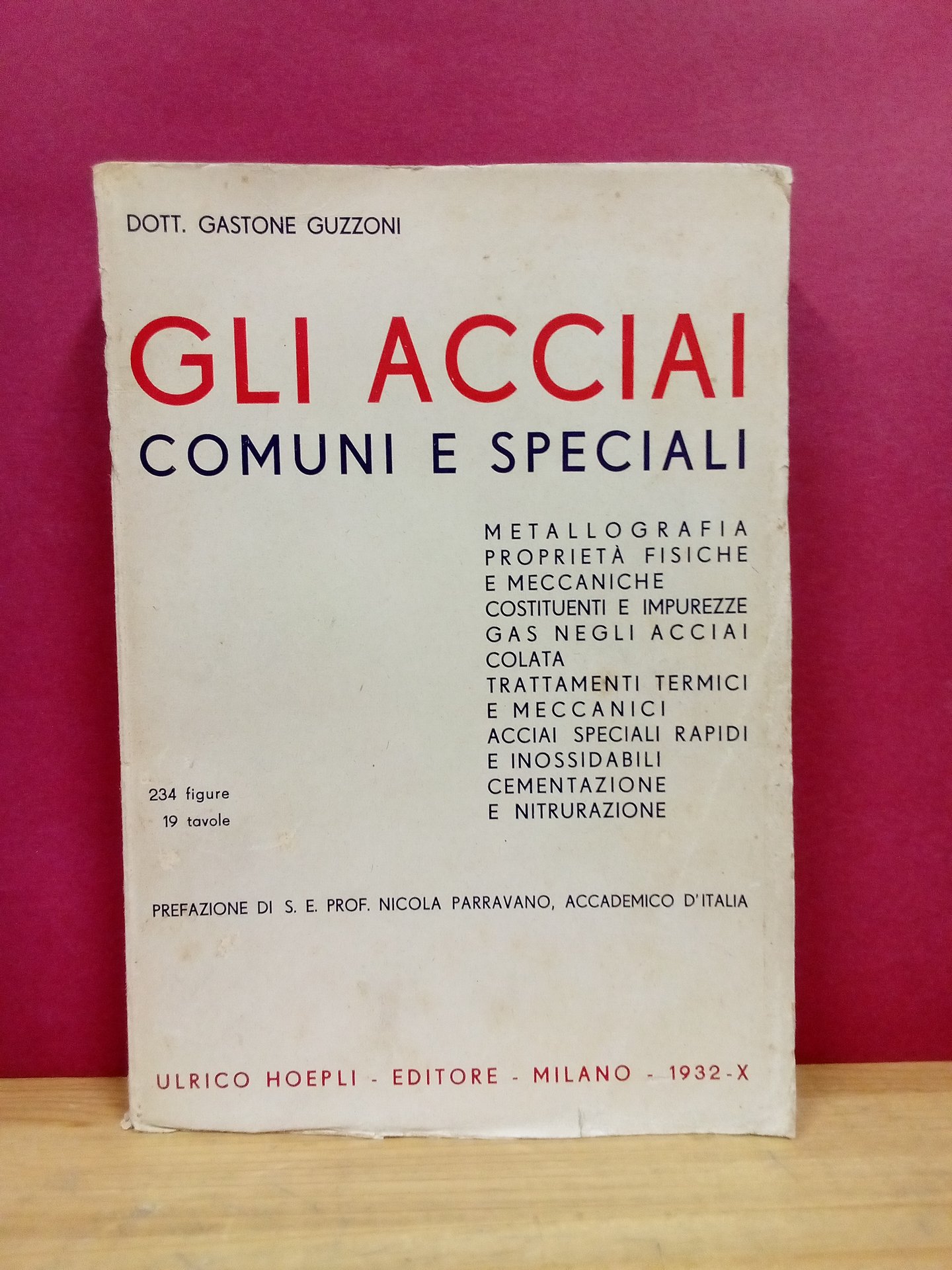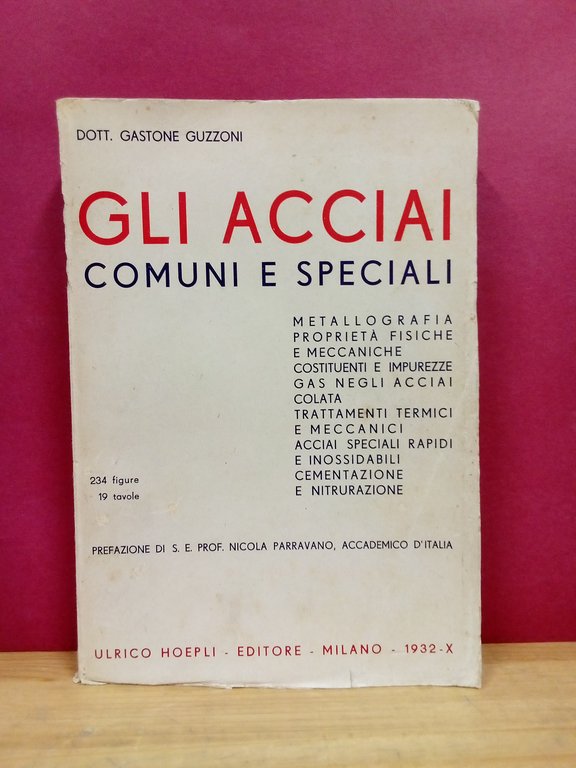 Gli acciai comuni e speciali. Metallografia – Proprietà fisiche e meccaniche – Costituenti e mpurezze – Gas negli acciai – Colata – Trattamenti termici e meccanici – Acciai speciali, rapidi e inossidabili – Cementazione e nitrurazione. | Libri antichi e moderni | Guzzoni, Gastone