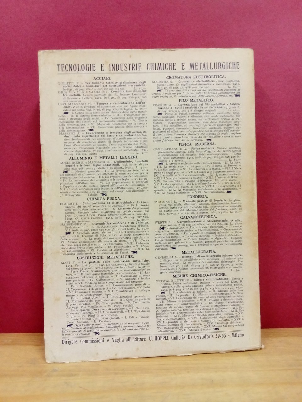 Gli acciai comuni e speciali. Metallografia – Proprietà fisiche e meccaniche – Costituenti e mpurezze – Gas negli acciai – Colata – Trattamenti termici e meccanici – Acciai speciali, rapidi e inossidabili – Cementazione e nitrurazione.