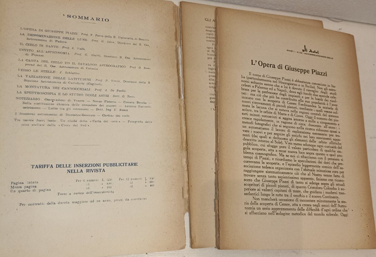 Gli astri nella scienza - storia - arte - letteratura novembre - dicembre 1932