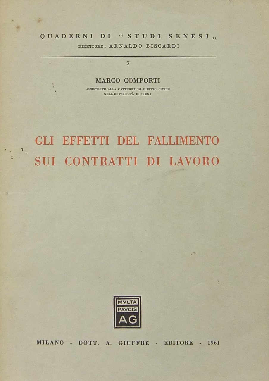 Gli effetti del fallimento sui contratti di lavoro | Libri antichi e moderni | Comporti Marco