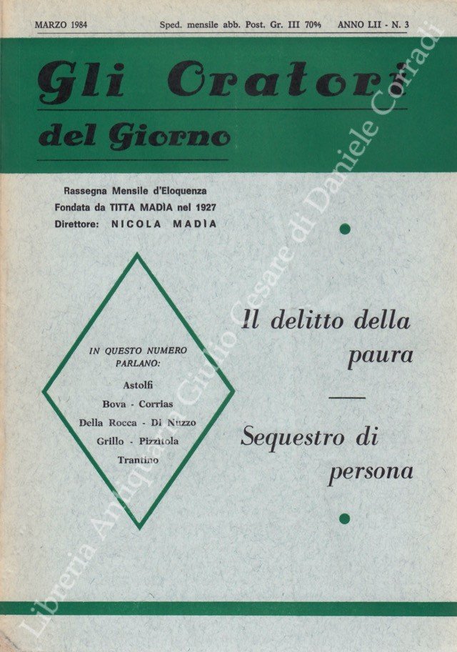 Gli oratori del giorno. Rassegna mensile d'eloquenza. Anno LII - Numero 3. Marzo 1984 | Libri antichi e moderni | Della Rocca A. Et Alii