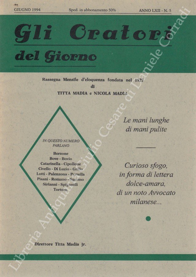 Gli oratori del giorno. Rassegna mensile d'eloquenza. Anno LXII - Numero 5. Giugno 1994 | Libri antichi e moderni | Bovio C. - Tortora E. Et Alii