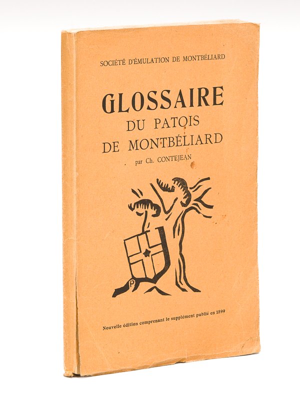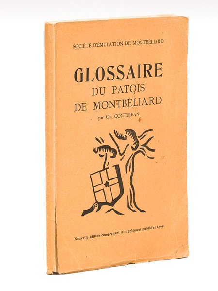 Tirage numéroté à 10 exemplaires avec deux bois originaux de Robert Pillods et Louis Vuillequez (n°5), Nouvelle édition comprenant le supplément publié en 1899, 1 vol. in-8 br., Société d'Emulation de Montbéliard, s.d., 156 pp. Retirage confidentiel du "Glossaire" de Contéjean, orné de 4 bois originaux. Etat très satisfaisant (fente partielle à un mors).