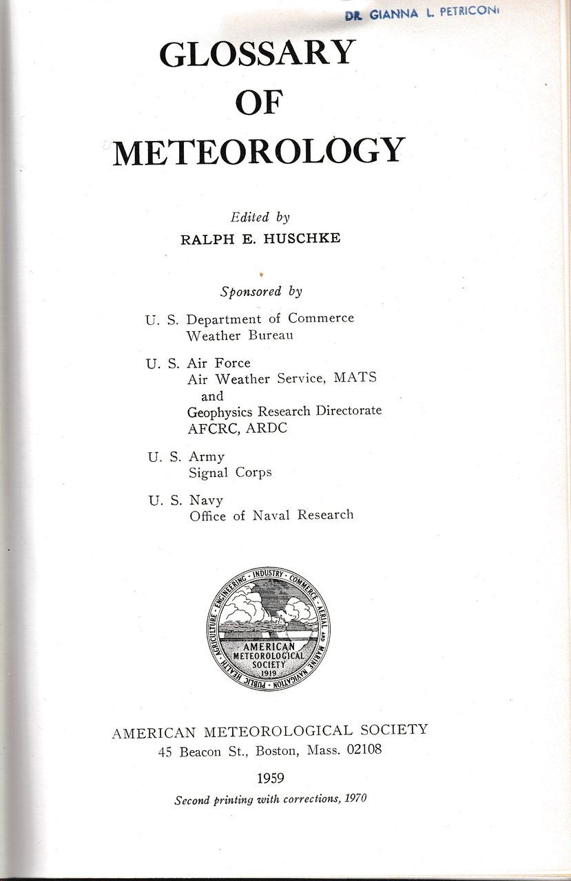 Glossary of Meteorology | Libri antichi e moderni | R. E. Huschke, ,R. E. Huschke