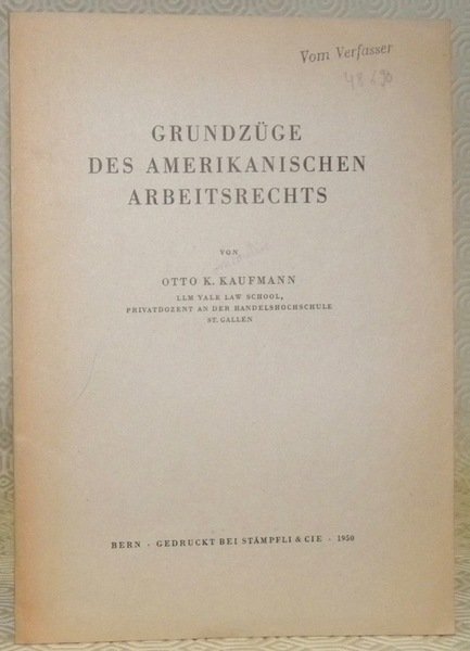 Grundzüge des amerikanischen Arbeitsrechts. | Libri antichi e moderni | Kaufmann, Otto K.