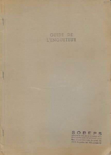 SOBEPS 1972 Bruxelles Sobeps sans date vers 1972, document tapuscrit In-4 agrafes en dos, 40 pages avec figures publié parla Soiciété belge d'étude des phénomènes spaciaux, type Ovni. Bon état. Rare