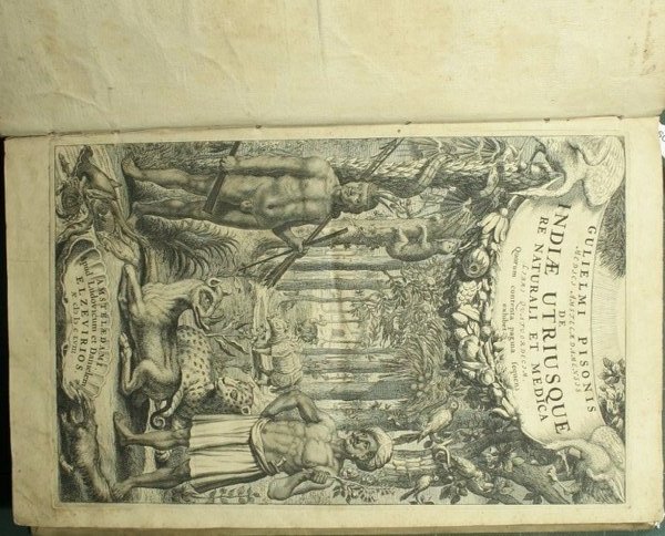 Libri quatuordecjm, quorum contenta pagina sequens exhibet - in 4° - pp.11 cc. nn. + 327 + 2 cc. nn.; 39; 226 + 1 c. nn. - Pergamena - Tre parti in un volume - Frontespizio riccamente illustrato, finalini, capilettera, incisioni nel testo - Prima edizione - Frontespizio in parte staccato - Seguito da: Georgii Marcgravii de Liebstad Tractatus topographicus & meteorologicus Brasiliae, cum eclipsi solari quibus additi sunt illius et aliorum commentarii de Brasiliensium & Chilensium indole & lingua; Iacobi Bontii [.] Historiae naturalis & medicae Indiae orientalis libri sex . Commentarii, quos auctor morte in Indiis praeventus, indigestos reliquit, a Gulielmo Pisone in ordinem redacti & illustrati, atque annotationibus et additionibus rerum & iconum necessaris adaucti e Gulielmi Pisonis Mantissa aromatica; sive de aromatum cardinalibus quatuor, et plantis aliquot indicis in medicinam receptis, relatio nova
