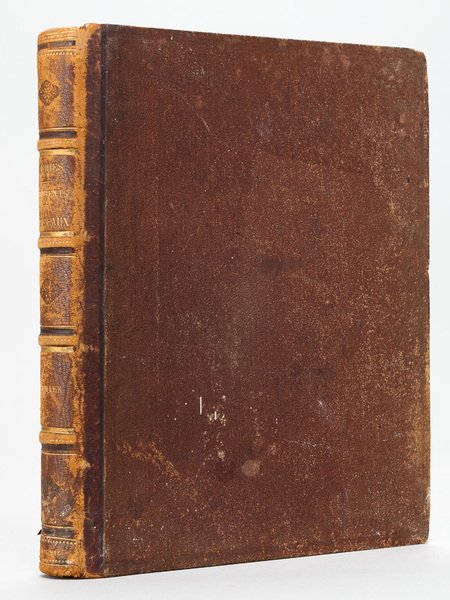 Ornée de magnifiques Planches gravées sur acier par Rouargue aîné, de vignettes dessinées par Rouargue Jeune, gravées par J. Quartley et illustrée de Sujets divers et de Lettres historiées, 1 vol. in-4 reliure demi-chagrin brun, dos à 4 nerfs, Chez MM. Bordes, Paris, Chez l'Auteur, Lawalle, Chaumas, Bordeaux, 1845, 231 pp. avec 31 planches hors texte Exemplaire complet des 31 planches signalées en table y compris l'allégorie et un plan de Bordeaux non signalé. Etat moyen (dos fort. frotté, plusieurs cahiers brunis, une planche débroché, tome premier seul). Prix en l'état pour ce grand classique du régionalisme bordelais, écrit par un architecte et historien girondin. Les illustrations sont de Adolphe Rouargue (1810-1884), frère cadet d'un autre illustrateur, Emile Rouargue (ca 1795-1865). Pour son travail, A. Rouargue s'est basé sur des aquarelles réalisées par l'auteur, dont les originaux sont conservés de nos jours par les Archives Municipales et la Société archéologique de Bordeaux.
