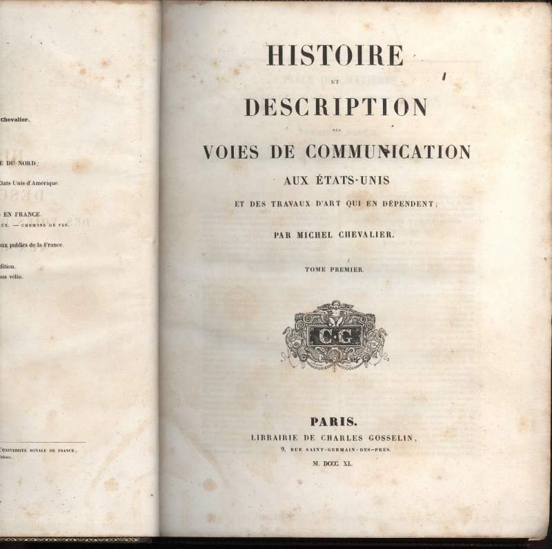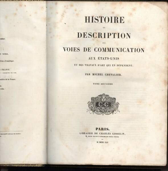 HISTOIRE ET DESCRIPTION DES VOIES DE COMMUNICATION AUX ETAS-UNIS et des travaux d'art qui en dependent-2 tomi-(1840/1841) | Libri antichi e moderni | Chevalier Michel