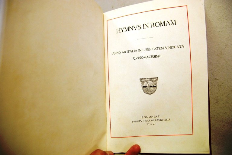 A.A. V.V. Hymnus in Romam, anno ab Italia in libertatem vindicata quinquagesimo. Bononiae Zanichelli Editore 1911 Perfette Rilegato .