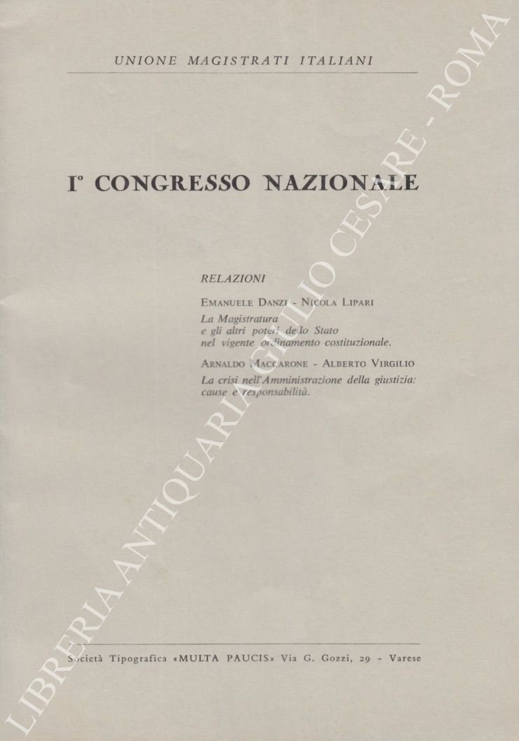 I° congresso nazionale. Relazioni: Emanuele Danzi - Nicola Lipari - La Magistratura e gli altri poteri dello Stato nel vigente ordinamento costituzionale. Arnaldo Maccarone - Alberto Virgilio - La crisi nell'Amministrazione della giustizia: cause e responsabilità | Libri antichi e moderni | Danzi Emanuele - Lipari Nicola - Maccarone Arnaldo - Virgilio Al, Berto