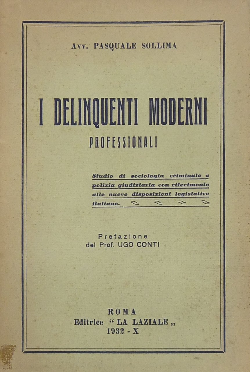 I delinquenti moderni professionali. Studio di sociologia criminale e polizia giudiziaria con riferimento alle nuove disposizioni legislative italiane | Libri antichi e moderni | Sollima Pasquale