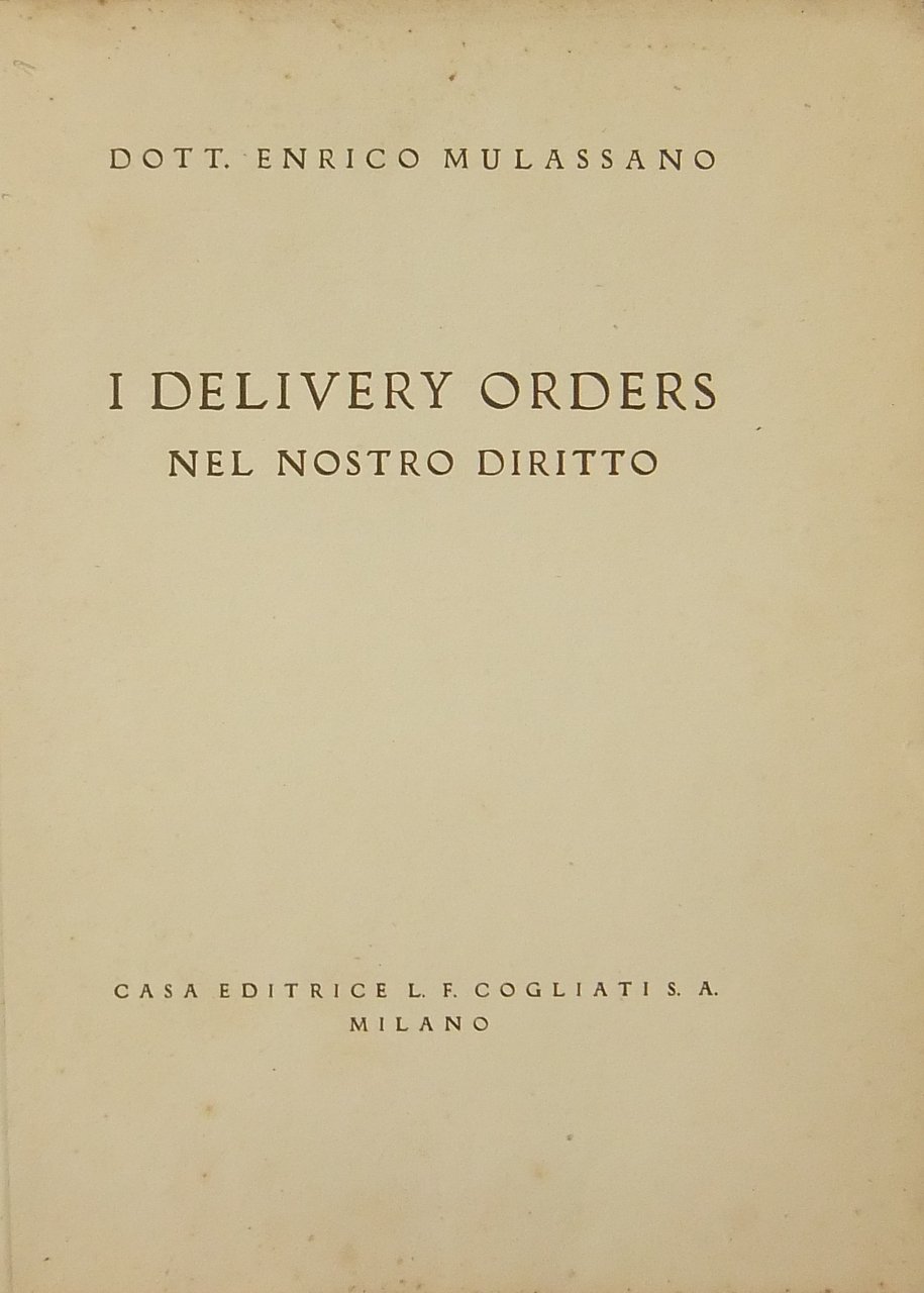 I delivery orders nel nostro diritto | Libri antichi e moderni | Mulassano Enrico