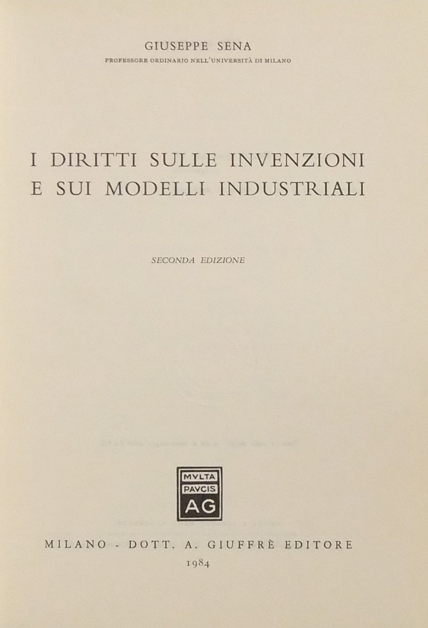I diritti sulle invenzioni e sui modelli industriali | Libri antichi e moderni | Sena Giuseppe