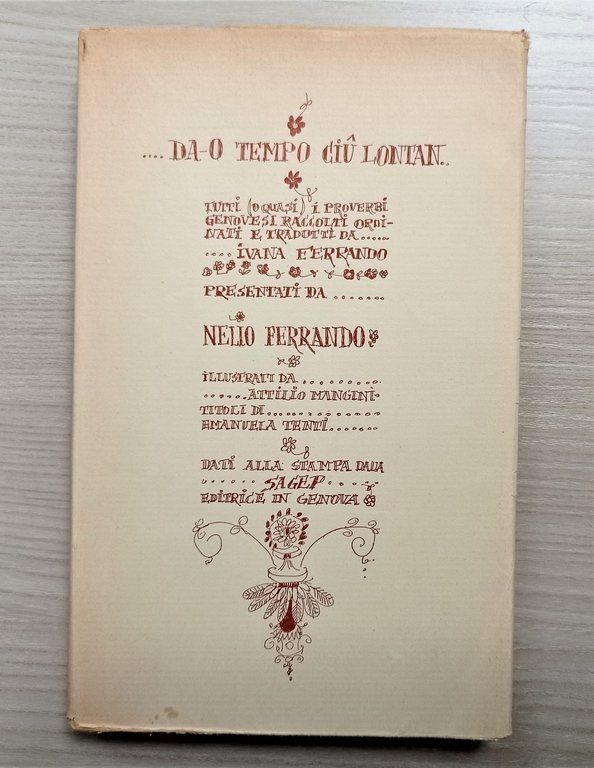 Da-o tempo ciû lontan: tutti (o quasi) i proverbi genovesi - Raccolti, ordinati e tradotti da Ivana Ferrando, presentati da Nelio Ferrando - ed. 1967 Testo in lingua italiana. Pagine 200 ca. Copertina morbida. Condizioni molto buone.