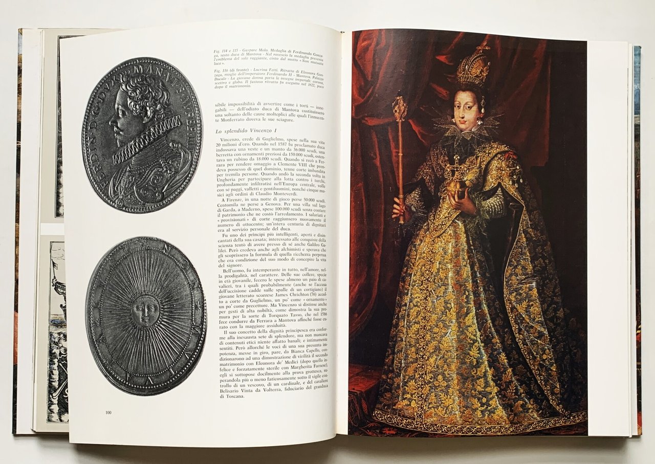 I ed.: novembre 1975. Direzione editoriale di Mirko Zagnoli. IV/ 304/ cart./ sovraccoperta patinata con grafica in b/n/bronzo e con i piatti illustrati a colori (primo piatto: Andrea Mantegna, particolare della scena dell'Incontro, Mantova Castello di San Giorgio, Camera degli Sposi- ultimo piatto: Domenico Morone, La caduta dei Bonacolsi, part.. Mantova, Palazzo Ducale)/ cofanetto editoriale muto in cartoncino nero. Numerose illustrazioni in b/n e a colori anche in tavole ripiegate. Fogli di guardia illustrati in grigio (Prmo foglio di guardia: Mantua - ultimo foglio di guardia: Mantova, Palazzo del Te, Sala dei Cavalli: soffitto a cassettoni. Impaginazione: Mario Perondi. Impaginazione: Mario Perondi. Stato buono (manca il cofanetto editoriale - sovraccoperta leggermente brunita). Indice: Presentazione; Il Presidente della Cassa di Risparmio delle Provincie Lombarde Giordano Dell'Amore - Giuseppe Amadei; I Gonzaga a Mantova: presenza politica e civile ("Longobardi sunt illi" - Corradi da Gonzaga - La fine dei Bonacolsi - Luigi Gonzaga - Prestigio e cultura - Il tempo di Ugolino - Fratricidio a Corte - Francesco I - Tutti insieme - Gianfrancesco - Il marchesato - Consulto per l'economia - Ludovico II - Breve tempo di Federico I - La stagione isabelliana - Il bel Federico II - Con l'imperatore - Il cardinale Ercole - Lo splendido Vincenzo I - Tre fratelli - I "francesi" - Note) - Ercolano Marani; La reggia gonzaghesca (Precisazioni introduttive - le premesse bonacolsiane - Apogeo dei Bonacolsi - Esordio dei Gonzaga - Il grande acquisto - Formazione della Corte - Costruzione del Castello - arricchimenti della Corte - Il momento del Pisanello - La materia di Bretagna - Trasferimento in Castello - Il momento del Mantegna - La Domus Nova - Isabella in Castello - L'episodio di San Sebastiano - Isabella in Corte Vecchia - Avvento di Giulio Romano - La Paleologa - La Corte Nuova - Sviluppi di Corte Nuova - Ulteriori svolgimenti - Rinnovamento di Corte Vecchia - apice dello splendore Gonzaghesco - Precisazioni varie - Epilogo dei Gonzaga - Dopo il crollo del ducato - Lineamenti di un recupero - Note - Cronologia essenziale della reggia di Mantova - Diuirettori delle opere di costruzione e di decorazione della reggia).