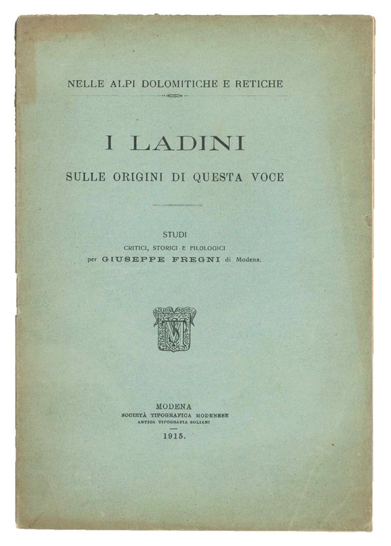 I ladini. Sulle origini di questa voce. | Libri antichi e moderni | FREGNI, Giuseppe