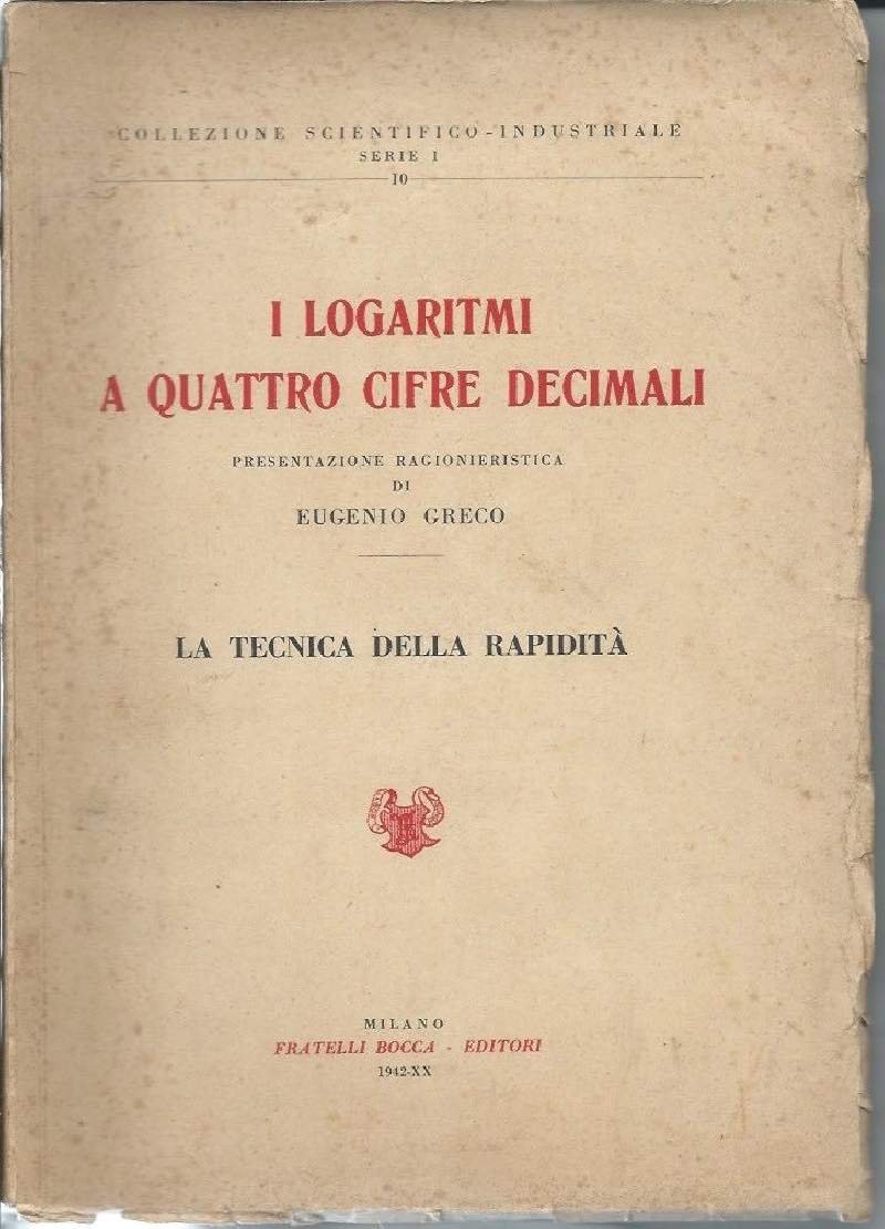 I LOGARITMI A QUATTRO CIFRE DECIMALI - La tecnica della rapidità (1942) | Libri antichi e moderni | Greco Eugenio