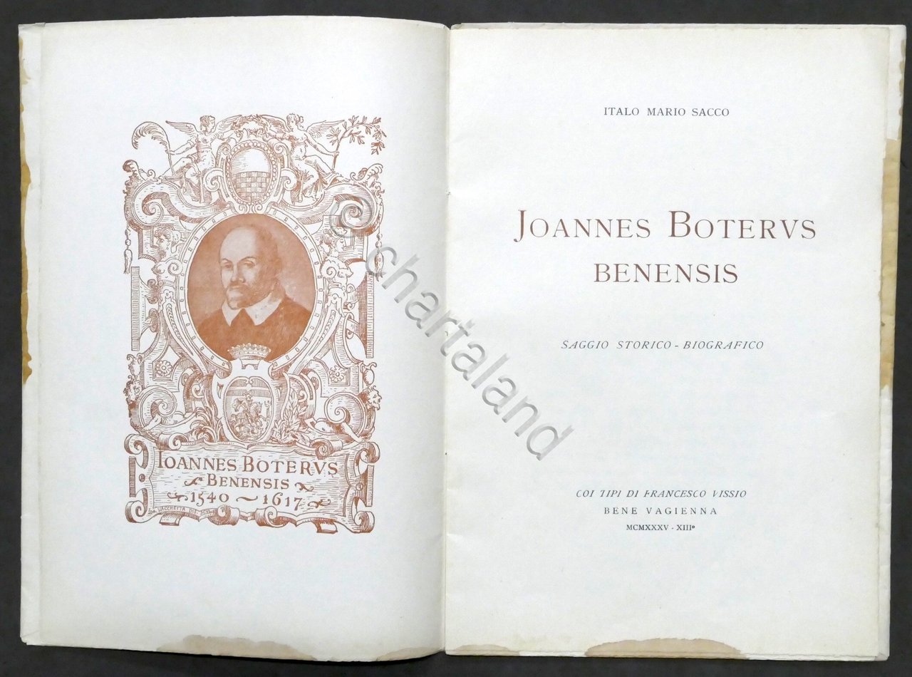 I. M. Sacco - Joannes Boterus Benensis - Saggio storico-biografico - ed. 1935 | Libri antichi e moderni |
