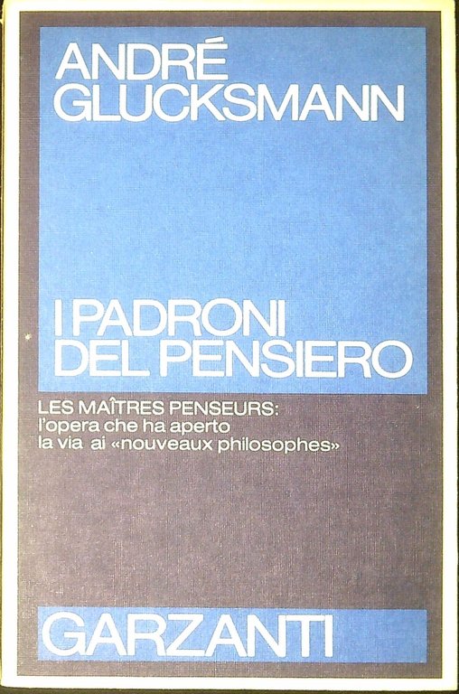Glucksmann , André I padroni del pensiero. Milano, GARZANTI 1977, Saggi blu 21 cm. 294 p. (33546)