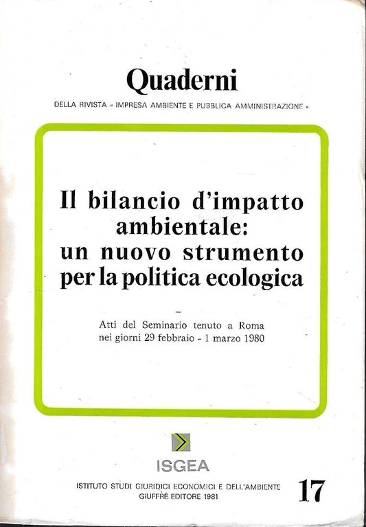 Il bilancio d'impatto ambientale: un nuovo strumento per la politica ecologica. Atti del Seminario tenuto a Roma 29 febbraio - 1 marzo 1980 | Libri antichi e moderni | AA.VV., ,AA.VV.