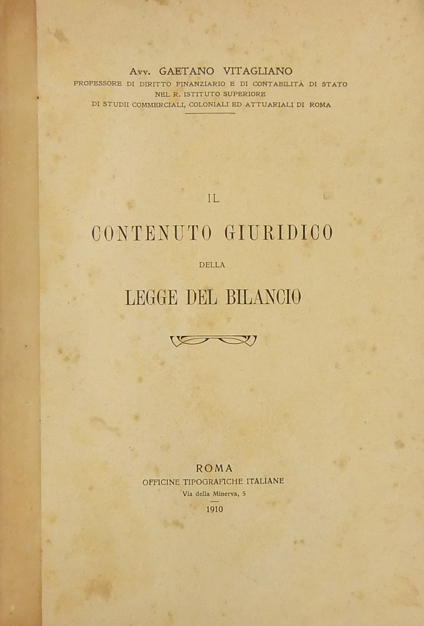 Il contenuto giuridico della legge del bilancio | Libri antichi e moderni | Vitagliano Gaetano