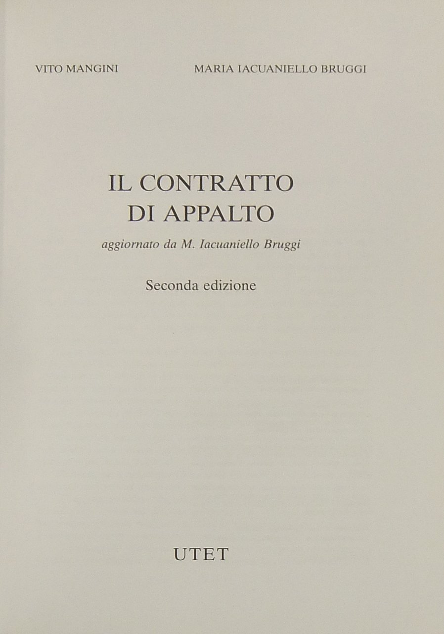 Il contratto di appalto. Aggiornato da M. Iacuaniello Bruggi | Libri antichi e moderni | Mangini Vito - Iacuaniello Bruggi Maria