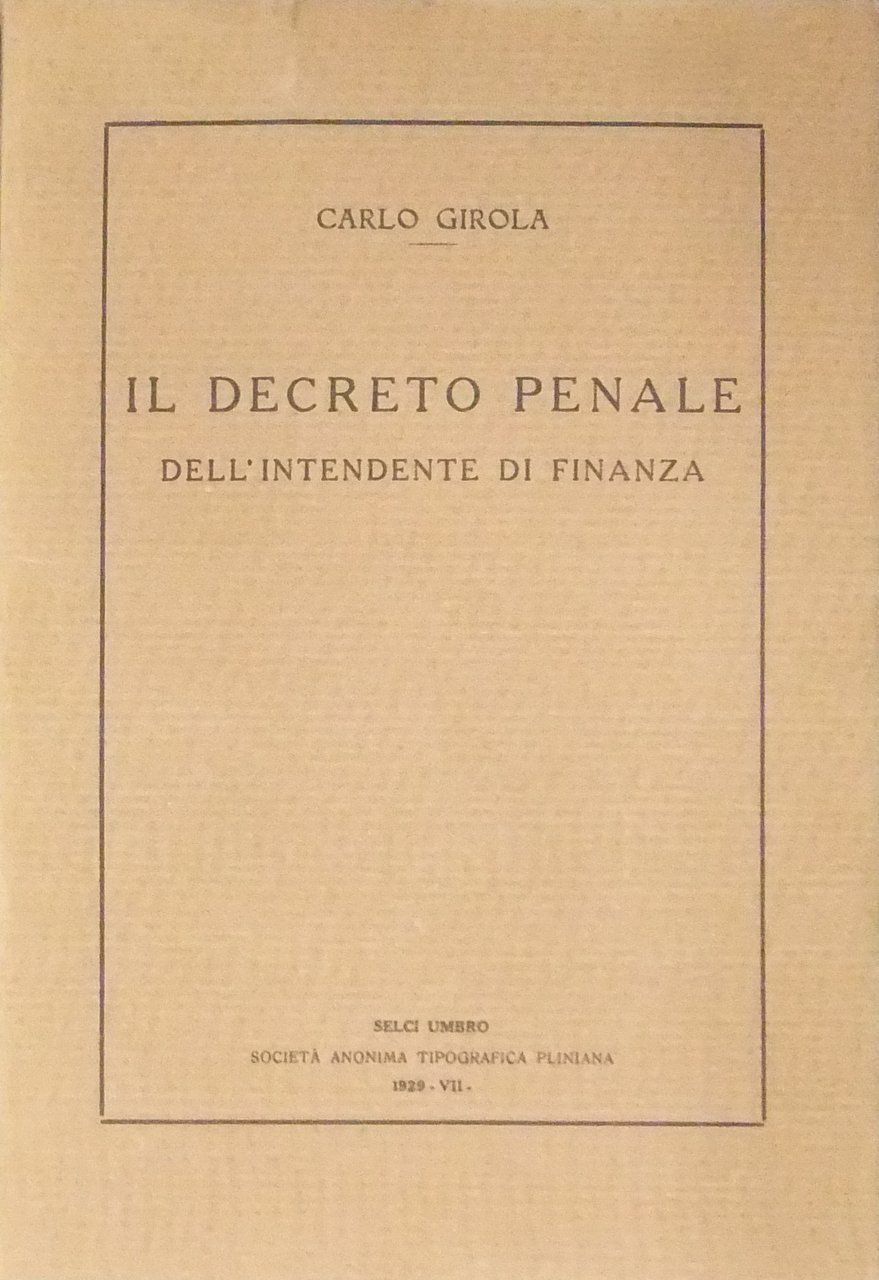 Il decreto penale dell'intendente di finanza | Libri antichi e moderni | Girola Carlo