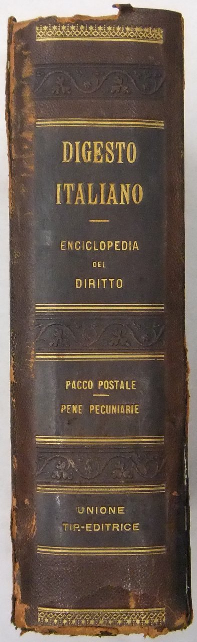 Il Digesto Italiano. Enciclopedia metodica e alfabetica di legislazione dottrina e giurisprudenza compilata da distinti giureconsulti italiani sotto la direzione di Luigi Lucchini. Vol. XVIII - parte prima - Pacco postale-Pene pecuniarie | Libri antichi e moderni | Autori Vari