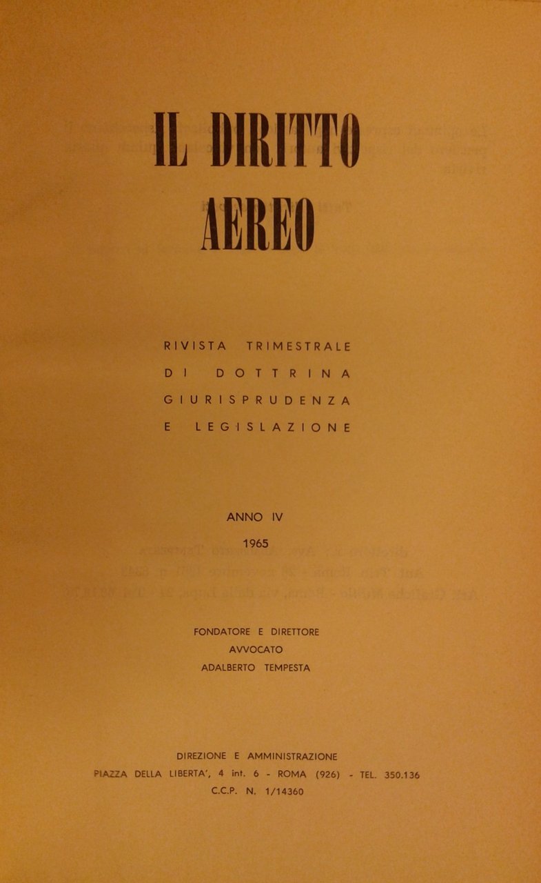 Il diritto aereo. Rivista trimestrale di dottrina giurisprudenza e legislazione. Anno IV - 1965